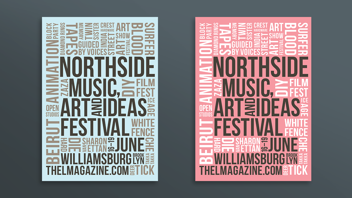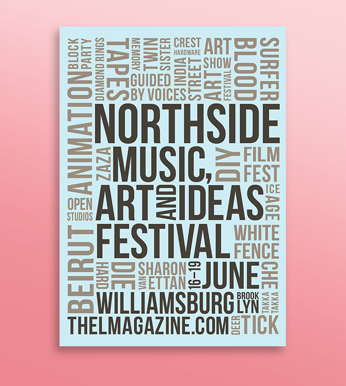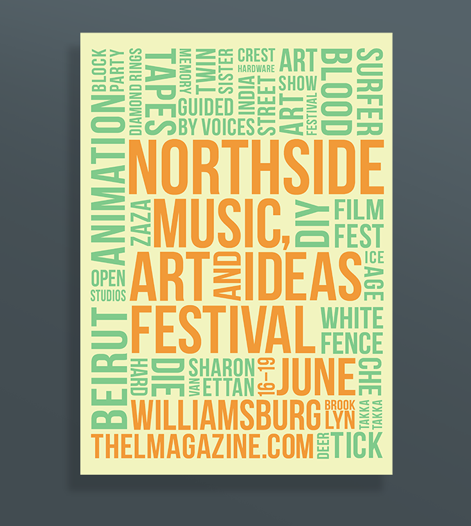 Type poster for the Northside Festival (r.i.p.!) that used to be held annually in north Brooklyn.